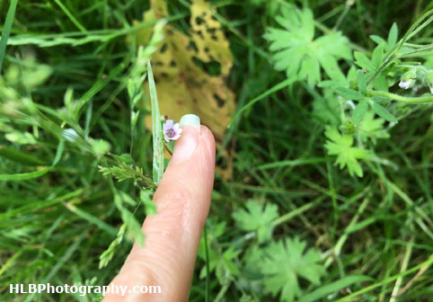 This evening I went for a short walk down the track used by the local farmer.  Its very wild and is just left to do what ever it wants! I haven’t been there for a while so thought I’d have a quick look around.  It had been my intention to look for young rabbits but I didn’t see any tonight; I only saw the tail of an adult and the side of a male pheasant before it headed off into the corn field.  There is a treasure trove of flowers and grasses to explore along the length of the track – some I could recognise and others I have no idea about like this tiny pink flower.